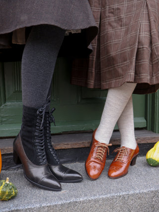 Love these wool lined bootees. Have to confess I accidentally ordered the wrong ones. However I loved them so much when they arrived I decided to keep them. So well made. Beautiful leather and comfy. Memery shoes etc are now my go to company for beautiful vintage styles.
