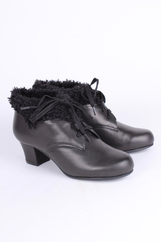 Soft 1940s /1950s style booties with fur - Black - Karin