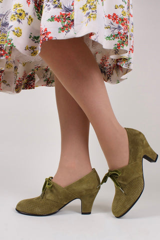 1940s pumps in suede with velvet laces - Powder Rose - Esther