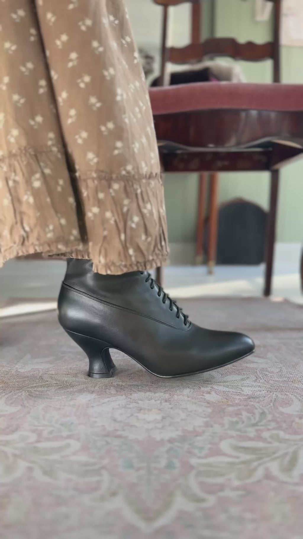 The heel is a copy of an original heel from this period, so the shape is 100% true to the Edwardian period. The heel is very balanced and so comfortable when walking.
